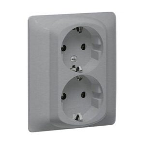 Двойная розетка - 2х2К+3 - винтовые клеммы - с защитными шторками в сборе - Алюминий - Galea Life