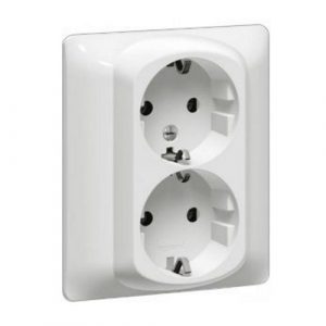 Двойная розетка - 2х2К+3 - винтовые клеммы - с защитными шторками в сборе - Белый - Galea Life