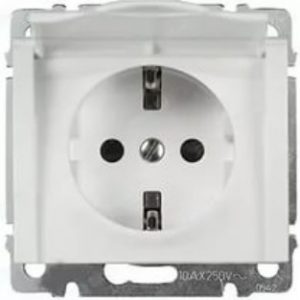 Розетка немецкий стандарт - 2К+3 - с защитными шторками - с крышкой - белая лицевая панель - Galea Life