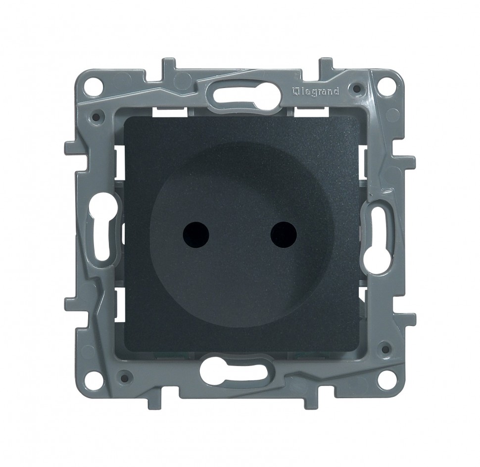 Розетка 2 Контакта (без заземления) винтовые зажимы со шторками, 16 АХ, Антрацит. Etika