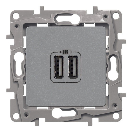 Зарядное устройство с двумя USB-разьемами 240В/5В 2400мА, Антрацит. Etika