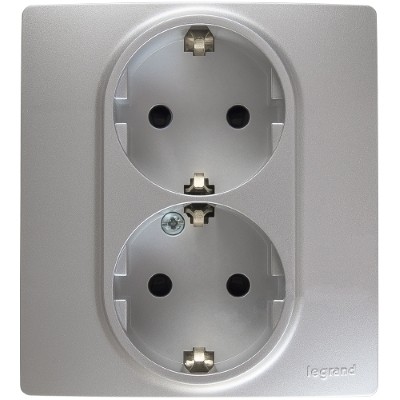 Розетка 2 x 2К+З - немецкий стандарт - винтовые зажимы - 16 А - 250 В~ - Алюминий - Etika