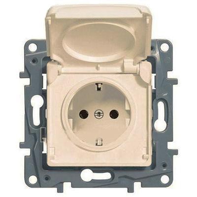 Розетка 2К+З IP 44 с откидной крышкой и шторками - немецкий стандарт - автоматические зажимы - 16 А - Слоновая кость - Etika