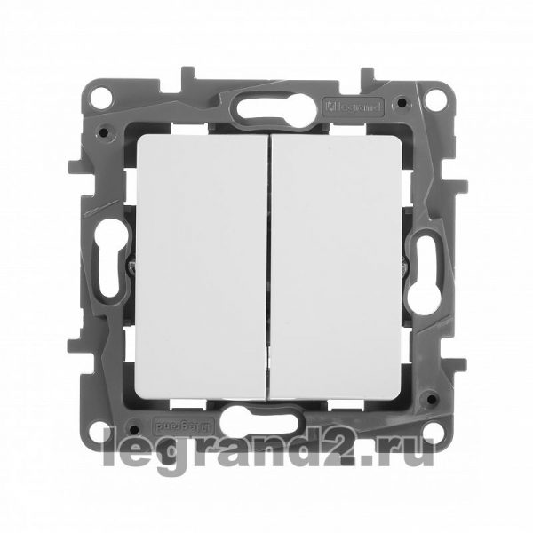Выключатель двухклавишный Legrand ETIKA, белый, 672202. Изделие производства компании Legrand, серия ETIKA выполнено из материала термопласт цвета Белый.