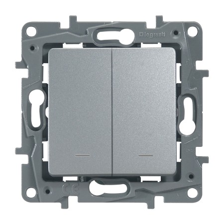 Выключатель двухклавишный с подсветкой/индикацией — автоматические клеммы — 10 AX — 250 В~ — Алюминий — Etika
