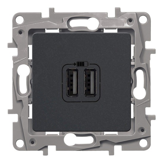 Зарядное устройство с двумя USB-разьемами 240В/5В 2400мА, Антрацит. Etika