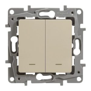 Выключатель двухклавишный с подсветкой - 10 AX - 250 В~ - Слоновая кость - Etika