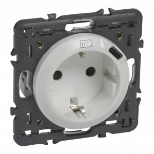 Розетка комбинированная 2К+З 16А ~250В со встроенным зарядным устройством USB C 1.5А 5В. Коллекция Valena LIFE.