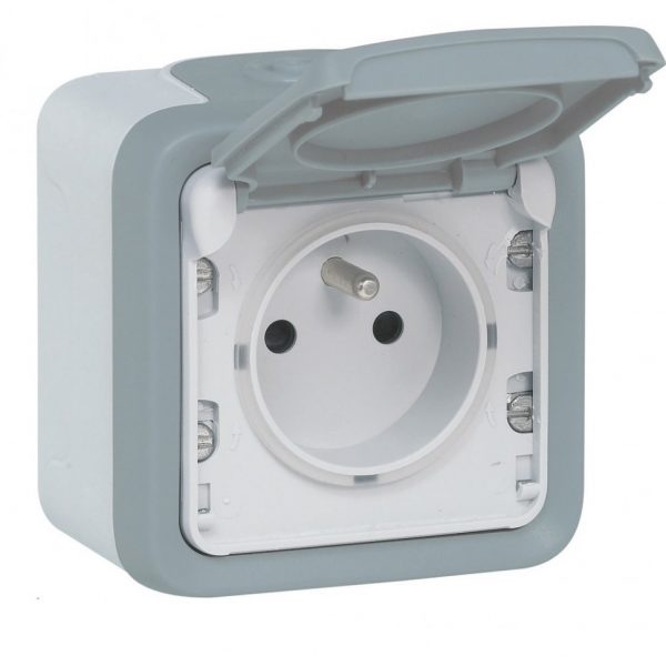 Розетка 2К+3 — французский стандарт — с защитой — с безвинтовыми зажимами — Серый — Программа Plexo