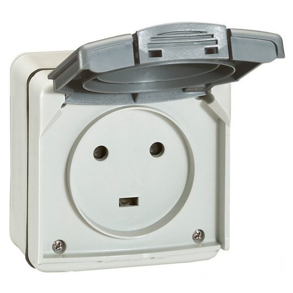 Розетка 2К+3 с винтовыми зажимами — IP 55 — IK 08 — 20 A — 230 В — Серый — Программа Plexo