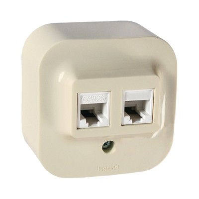 Розетка двойная RJ11 + RJ45 — категория 5e — UTP — Quteo IP 20 — Слоновая кость