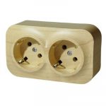 Розетка двойная с защитными шторками, Дерево. Quteo