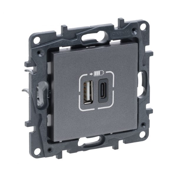 Розетка USB Niloe Step Тип А+C 12Вт+15Вт 5В Сталь