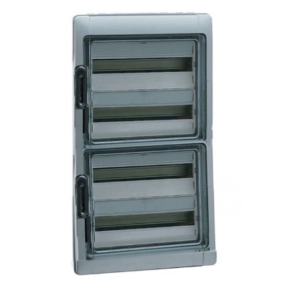 Распределительный щиток Practibox3 скрытого монтажа - IP 40 - IK 07 - 2 рейки - 36 модулей - с клеммиком заземления - прозрачная дверь