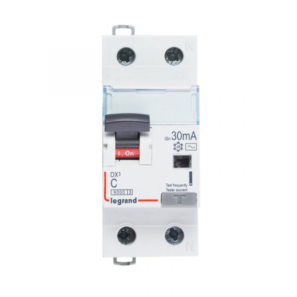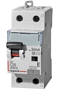 Автоматический выключатель дифференциального тока DX³ 6000 — 10 кА — тип характеристики С — 1П+Н — 230 В~ — 25 А — тип AС — 30 мА — 2 модуля