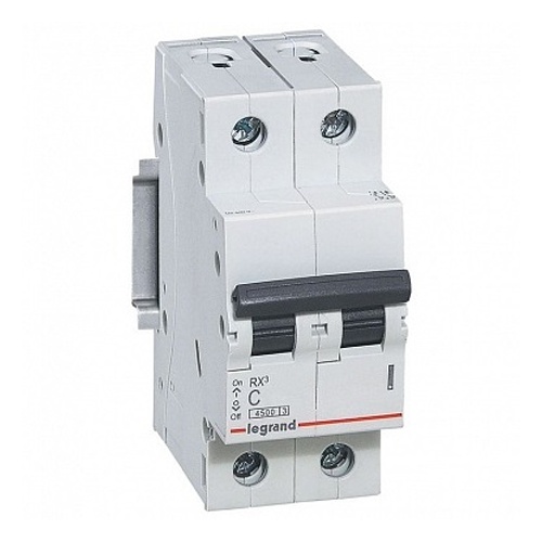 Двухполюсный автоматический выключатель Legrand серии RX3 типа C. Номинальный ток — 6А. Отключающая способность — 4,5кА. Размер — 2 модуля DIN (35 мм). Автоматические выключатели этой серии производятся в Европе. У них увеличенная износостойкость (10000 электрических и 20000 механических операций). Группа Legrand гарантирует качество и соответствие заявленным характеристикам. Товары серии RX3 рекомендуются к применению в реконструируемых и вновь возводимых жилых домах, при ремонте. Допускаются к установке на различных объектах (жилые комплексы, небольшие офисы и торговые помещения).