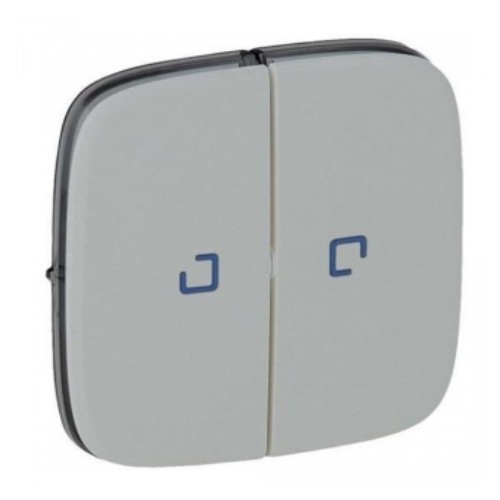 — двухклавишного кнопочного выключатель с Н.О./Н.З. контактами с подсветкой 6 A — 250 В~, Кат. № 7 520 18 + 2 x 0 676 86 (клавиша с голубой линзой в центре)