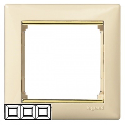 Рамка 3 поста горизонтальная Слоновая кость/Золотой штрих Valena