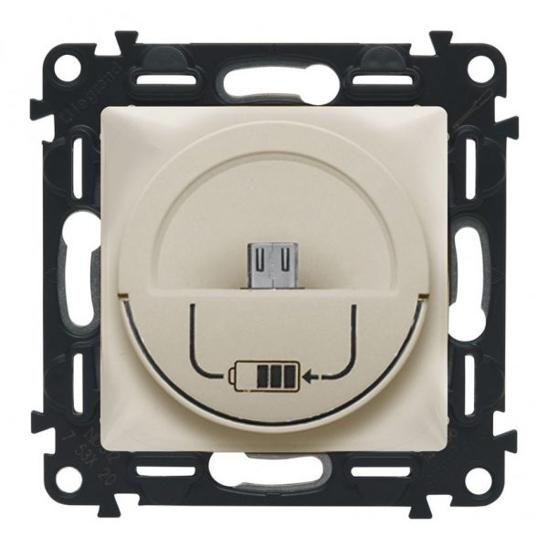 Зарядная станция MicroUSB 240В/5В 1500мА. С лицевой панелью. Слоновая кость. Valena LIFE