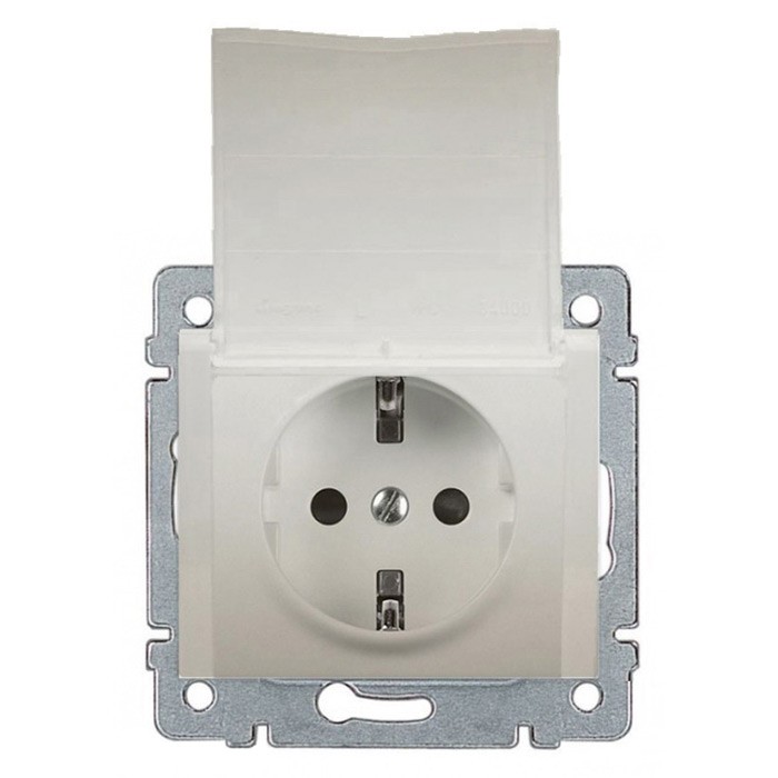 Розетка немецкий стандарт - 2К+3 - с защитными шторками - с крышкой - лицевая панель жемчуг - Galea Life