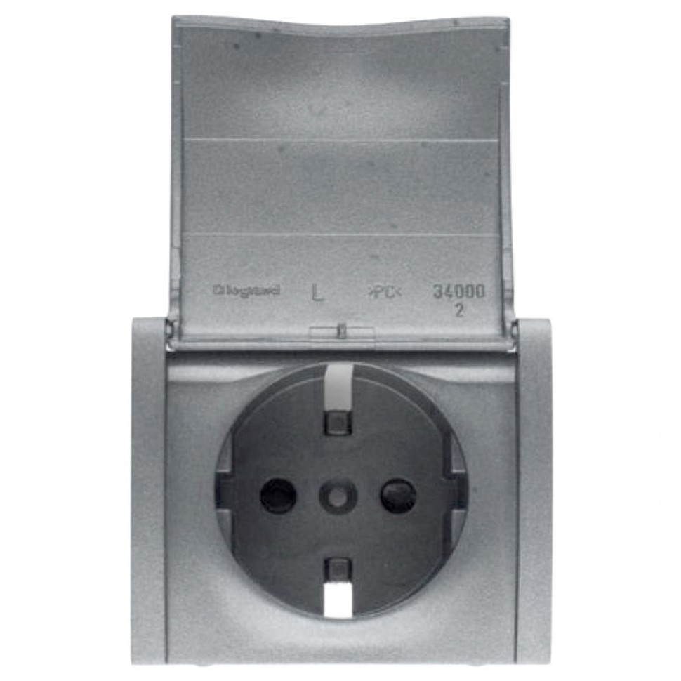 Розетка немецкий стандарт - 2К+3 - с защитными шторками - с крышкой - лицевая панель алюминий - Galea Life