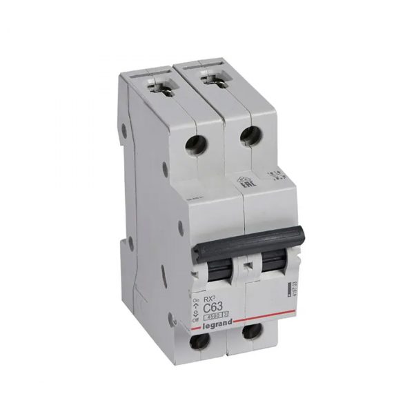 Двухполюсный автоматический выключатель Legrand серии RX3 типа C. Номинальный ток — 63А. Отключающая способность — 4,5кА. Размер — 2 модуля DIN (35 мм). Автоматические выключатели этой серии производятся в Европе. У них увеличенная износостойкость (10000 электрических и 20000 механических операций). Группа Legrand гарантирует качество и соответствие заявленным характеристикам. Товары серии RX3 рекомендуются к применению в реконструируемых и вновь возводимых жилых домах, при ремонте. Допускаются к установке на различных объектах (жилые комплексы, небольшие офисы и торговые помещения).
