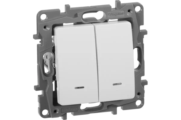 Выключатель двухклавишный с подсветкой Legrand Etika 10 A 250 В 672204 (белый)