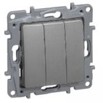 Выключатель/переключатель трехклавишный 10AX автоматические клеммы, Алюминий. Etika