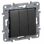 Выключатель/переключатель трехклавишный 10AX автоматические клеммы, Алюминий. Etika
