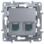 Двойная розетка RJ 45 — категория 5е — UTP — Etika — алюминий
