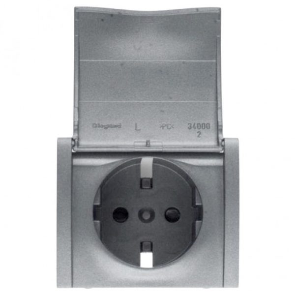 Розетка немецкий стандарт — 2К+3 — с защитными шторками — с крышкой — лицевая панель алюминий — Galea Life
