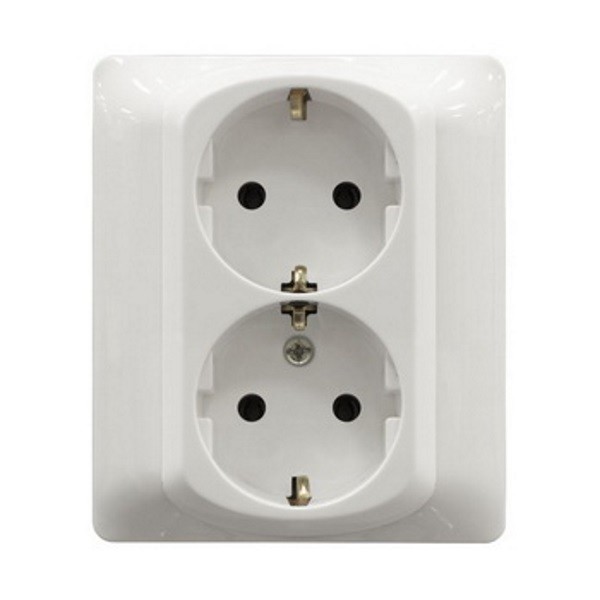 Двойная розетка — 2х2К+3 — винтовые клеммы — с защитными шторками в сборе — Белый — Galea Life