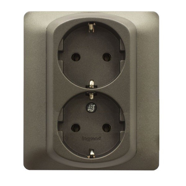 Двойная розетка — 2х2К+3 — винтовые клеммы — с защитными шторками в сборе — Тёмная бронза — Galea Life