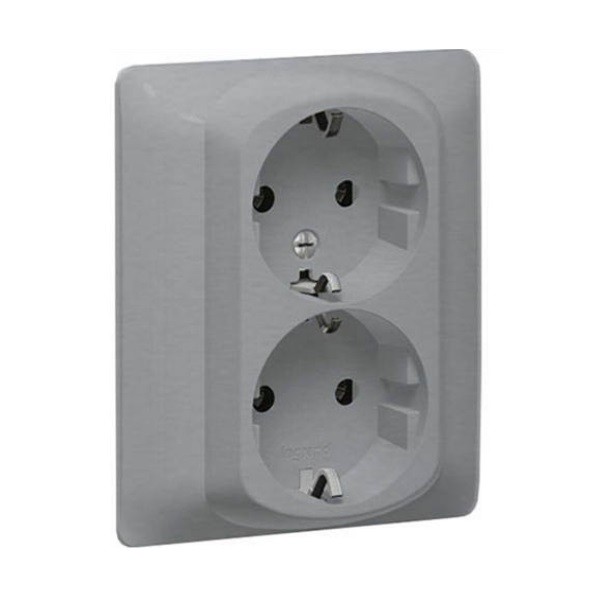 Двойная розетка — 2х2К+3 — винтовые клеммы — с защитными шторками в сборе — Алюминий — Galea Life