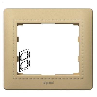 Рамка 2 поста — вертикальный монтаж — из натуральной кожи — Светлая Кожа/Havana — Galea Life