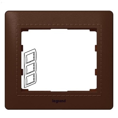 Рамка 3 поста — вертикальный монтаж — из натуральной кожи — Темно-коричневая Кожа/Club — Galea Life