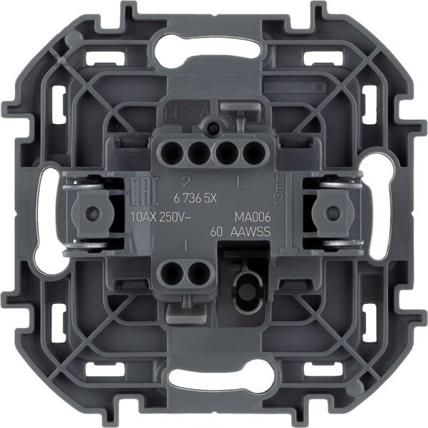 Переключатель одноклавишный Legrand Inspiria для скрытого монтажа, цвет «Белый», номинальный ток 10 А, напряжение ~250В.