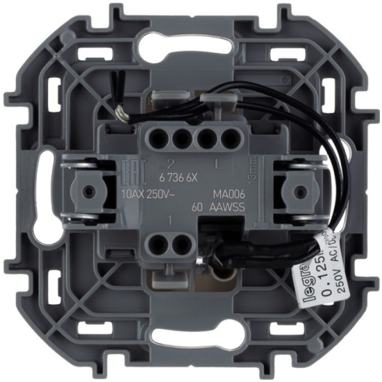 Переключатель одноклавишный с подсветкой/индикацией Legrand Inspiria для скрытого монтажа,цвет Слоновая кость, номинальный ток 10 А, напряжение 250В. Предназначен для установки в электрических сетях жилых и общественных зданий и используется для управления приборами освещения, вентиляции и т.д. Используется для управления нагрузкой с одного, двух или более мест (совместно с промежуточными выключателями). Оснащен светодиодной лампой для подсветки или индикации. Особенности изделия: — Компактный механизм с глубиной всего 20 мм. комфортно размещается в различных монтажных коробках. — Материал клавиш — глянцевый пластик АБС, стоек к выгоранию и загрязнениям. — Все токоведущие части выключателя имеют защиту от случайного прикосновения. — Безвинтовые зажимы для присоединения проводов обеспечивают быстрое подключение и отключение, гарантируют надежное и долговечное соеднинение и не требуют обслуживания. — Удобные широкие толкатели облегчают работу по демонтажу провода. — Улучшенная эргономика снижает вероятность искрения при коммутации светодиодов. — Ход клавиши короткий, не громкий. — Универсальная LED-лампа белого цвета с низким энергопотреблением 0.125мА и возможностью замены — Благодаря свободной схеме подключения, лампа подсветки либо облегчает ориентирование в темноте, либо информирует о включении нагрузки. — Клавиша оборудована линзой для заметного светового сигнала подсветки или индикации.