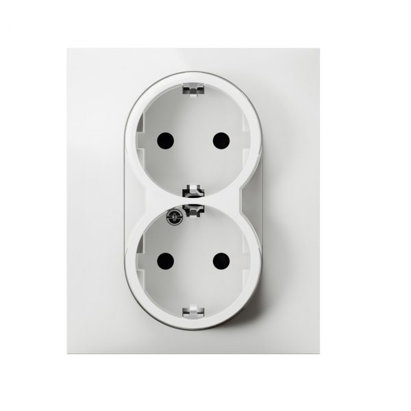 Розетка двойная 2х2К+З Suno 16А 250В с з/ш безвинт.зажим Белый