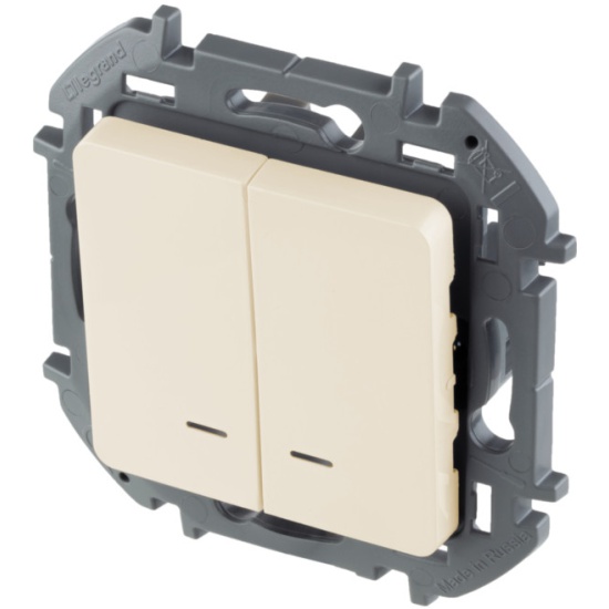Выключатель двухклавишный с подсветкой Legrand 673631 Inspiria с/у слоновая кость