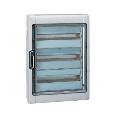 Распределительный щиток Practibox3 скрытого монтажа - IP 40 - IK 07 - 4 рейки - 72 модуля - с клеммиком заземления - прозрачная дверь