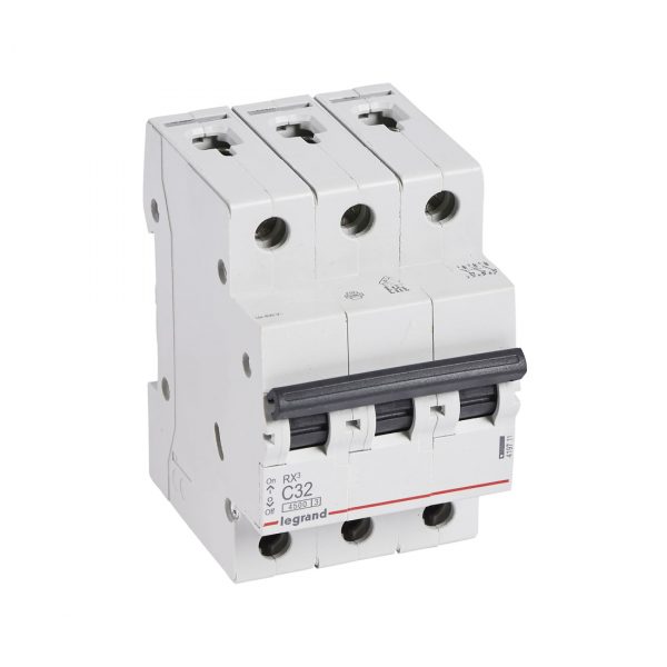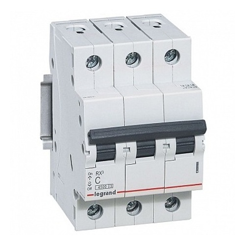 Трехполюсный автоматический выключатель Legrand серии RX3 типа C. Номинальный ток — 32А. Отключающая способность — 4,5кА. Размер — 3 модуля DIN (52,5 мм). Автоматические выключатели этой серии производятся в Европе. У них увеличенная износостойкость (10000 электрических и 20000 механических операций). Группа Legrand гарантирует качество и соответствие заявленным характеристикам. Товары серии RX3 рекомендуются к применению в реконструируемых и вновь возводимых жилых домах, при ремонте. Допускаются к установке на различных объектах (жилые комплексы, небольшие офисы и торговые помещения).