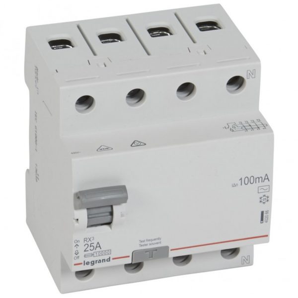 RX3 ВДТ (УЗО) 100мА 25А 4П тип AC