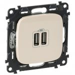 Зарядное устройство с двумя USB-разьемами 240В/5В 1500мА. С лицевой панелью. Слоновая кость. Valena ALLURE
