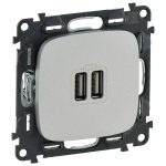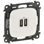 Зарядное устройство с двумя USB-разьемами 240В/5В 1500мА. С лицевой панелью. Слоновая кость. Valena ALLURE
