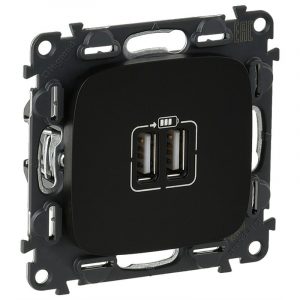 Зарядное устройство с двумя USB-разьемами 240В/5В 1500мА. С лицевой панелью. Антрацит. Valena ALLURE