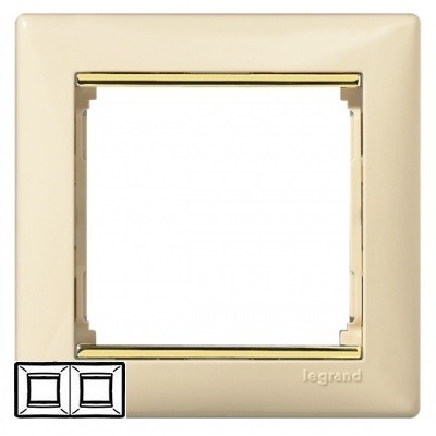 Рамка 2 поста горизонтальная Слоновая кость/Золотой штрих Valena
