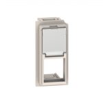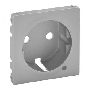 Лицевая панель розетки 2К+З с крышкой. Алюминий. Valena LIFE