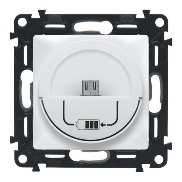 Зарядная станция MicroUSB 240В/5В 1500мА. С лицевой панелью. Белый. Valena LIFE