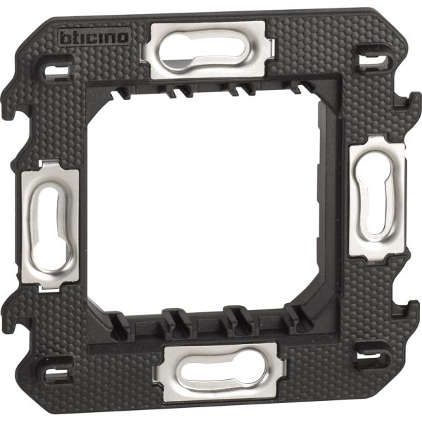 Декоративная рамка цвета Черный на 2 поста (2+2 модуля) в комплекте с двумя суппортами K4702, Bticino, серия Living Now